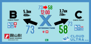 - intersection X: 11:59am(考量安全性,在路口”X”點允許73公里組降組至58公里組)