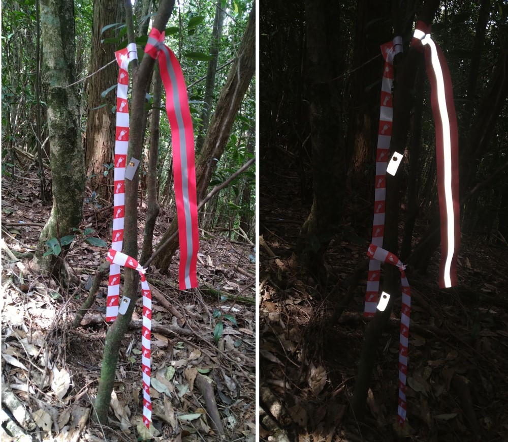 - Small Reflective Tag (only visible with headlamp, but even during day with headlamp) – first 12km and last 15km has these!!! First 8km has only reflective tag, no ribbons, we recomend keep headlamp ON even after sunrise (~7am) and hour before sunset (~5pm)