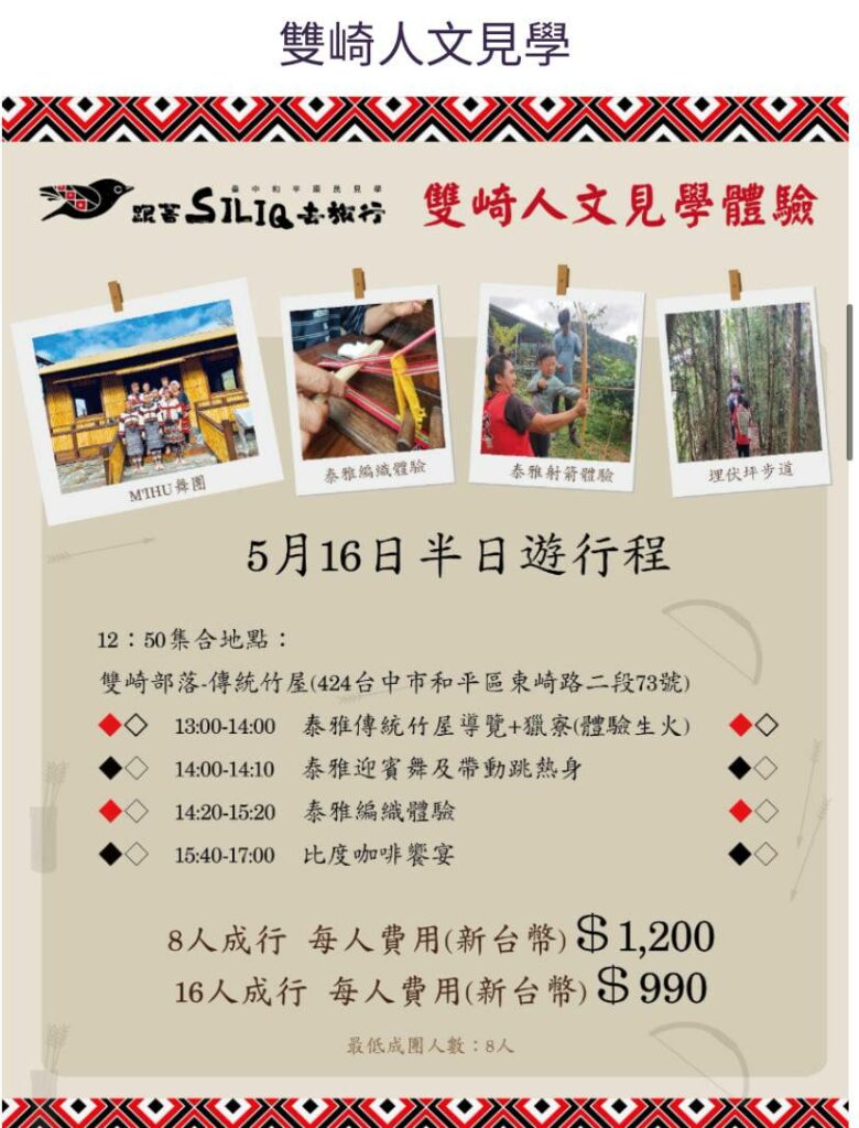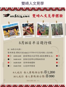 - 👉雙崎人文見學半日遊 https://www.surveycake.com/s/A743O