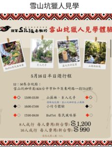 - 👉 雪山坑獵人見學半日遊 https://www.surveycake.com/s/w7DdP
